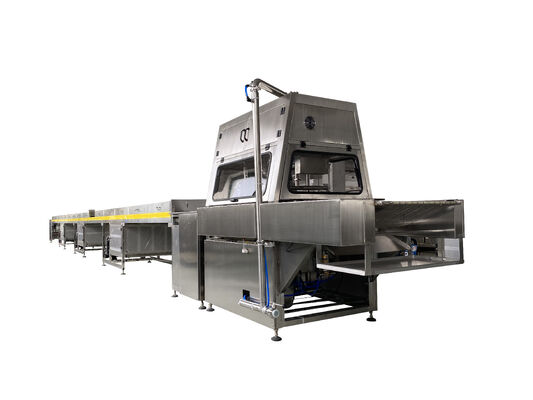 Ta linia produkcyjna obsługuje ciemną czekoladę, czekoladę mleczną i czekoladę złożoną, z opcjonalnymi systemami polerowania i chłodzenia, aby osiągnąć błyszczący, wysokiej jakości wykończenie.