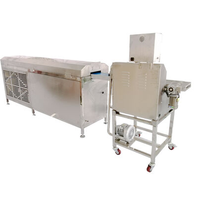 Small Commercial tunnel cooling chocolate enrobing machine consists of small chocolate enrober and 3P Chocolate cooling tunnel. The Commercial type chocolate enrobing machine with cooling tunnel is designed for making chocolate coated products, such as protein bar, energy bar, cereal bar, granola bars, energy ball, date ball, truffles, cookies, biscuits, crackers, pies, cakes, breads, wafer sticks, egg rolls, fruits, nuts, candy bars, donuts and so on.